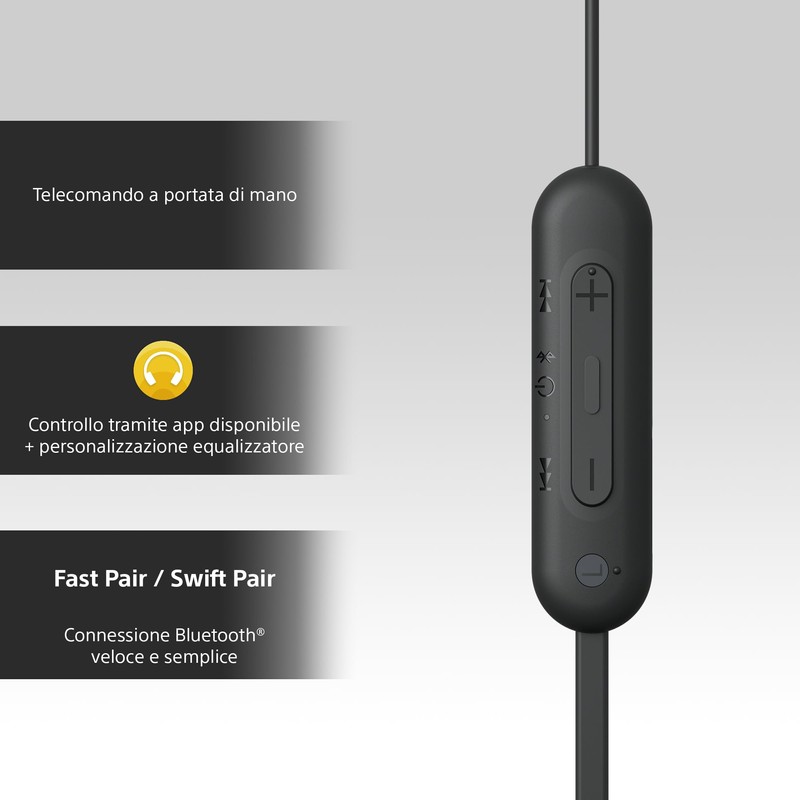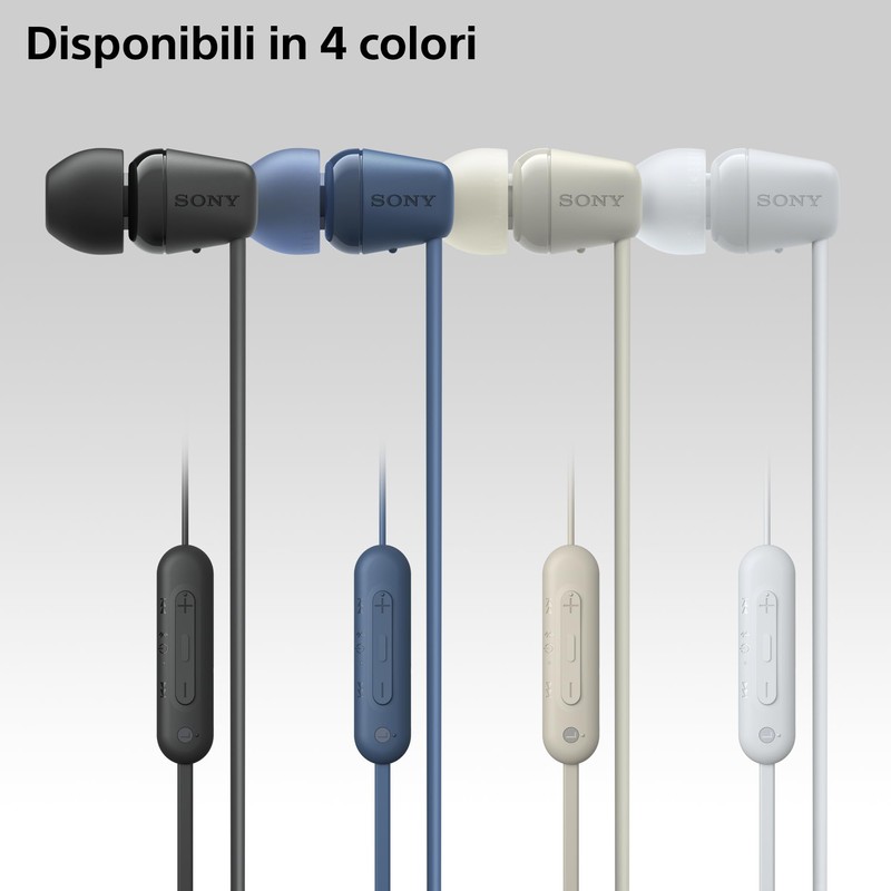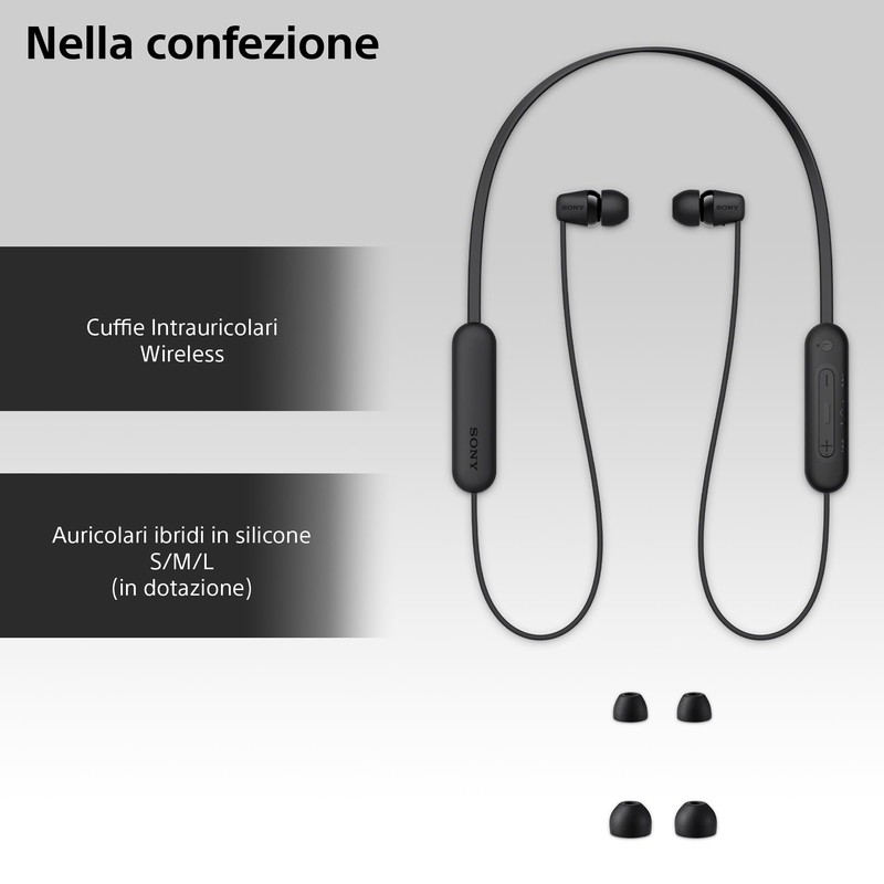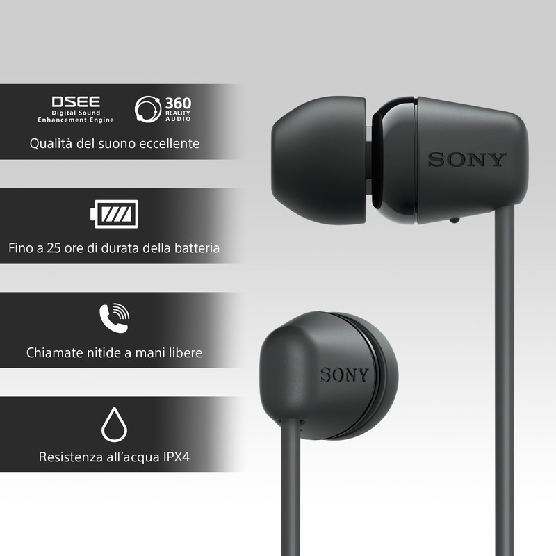Sony kabellose WI-C100 In-Ear-Kopfhörer (bis zu 25 Stunden Akkulaufzeit, optimiert für Sprachassistenten, integriertes Mikrofon für Telefonate, Bluetooth), Schwarz, klein
