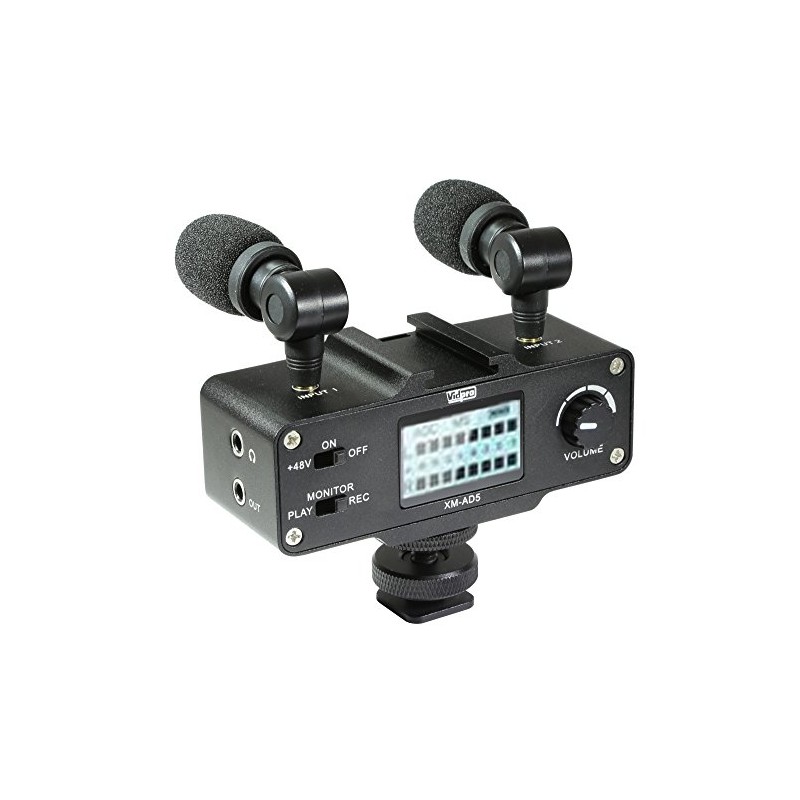 Sony NSC-GC1 Camcorder External Microphone Vidpro XM-AD5 Mini Pre-Amp Smart Mixer with Dual Condenser Microphones for DSLRs, Video Cameras and Phones