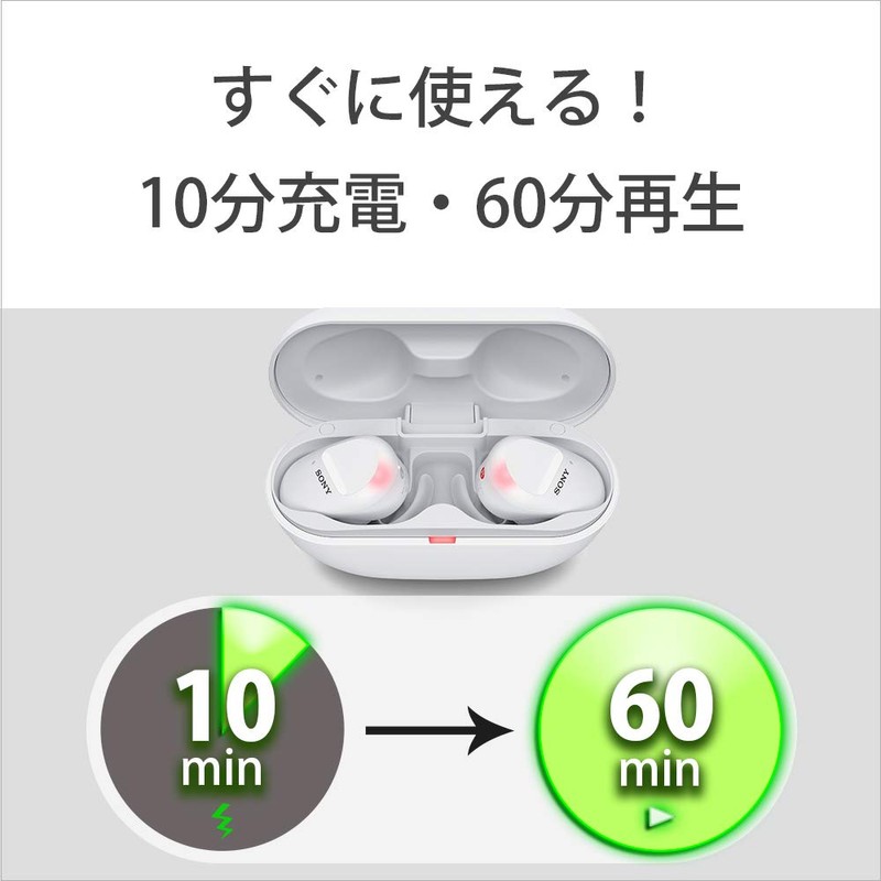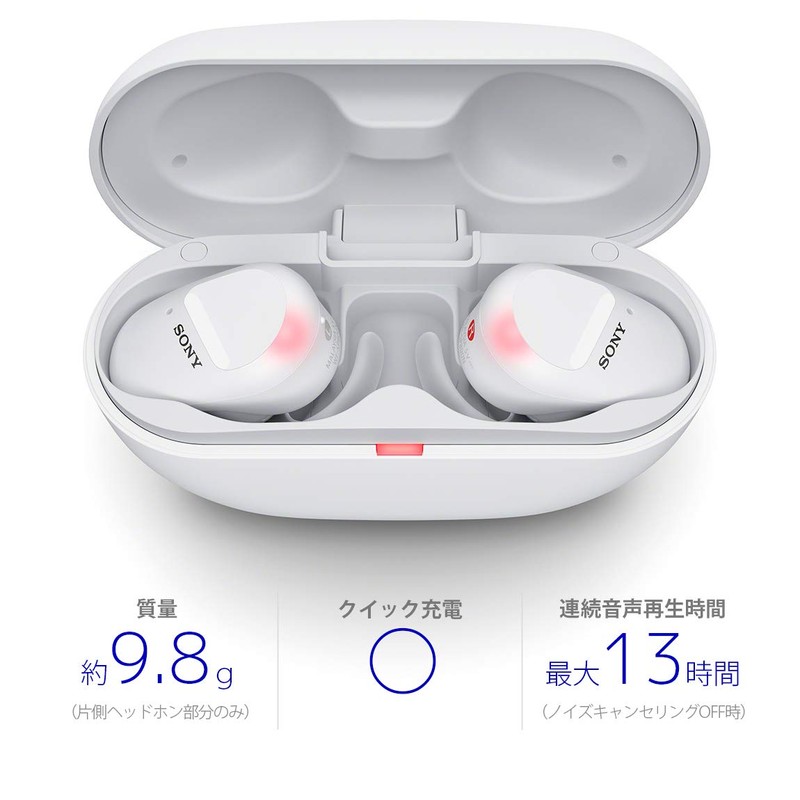 Sony WF-SP800N Fully Wireless Noise Cancelling Earbuds, Bluetooth Compatible, Left and Right Separated, Waterproof, 2020 Model, 360 Reality Audio Certified Model, White, WF-SP800N WM
