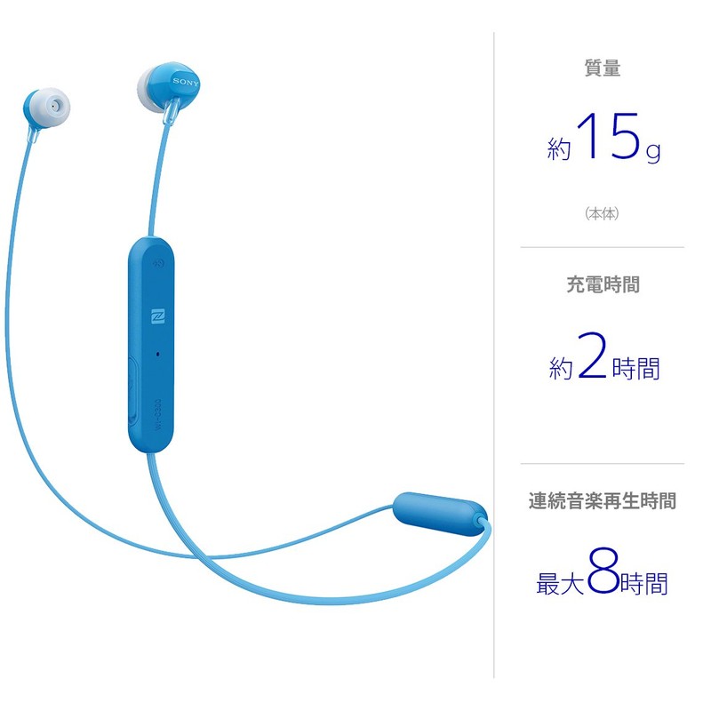 SONY WI-C300 Wireless Headphones: Bluetooth compatibility, Up to 20 hours of continuous playback, Built-in microphone, 2018 model bule