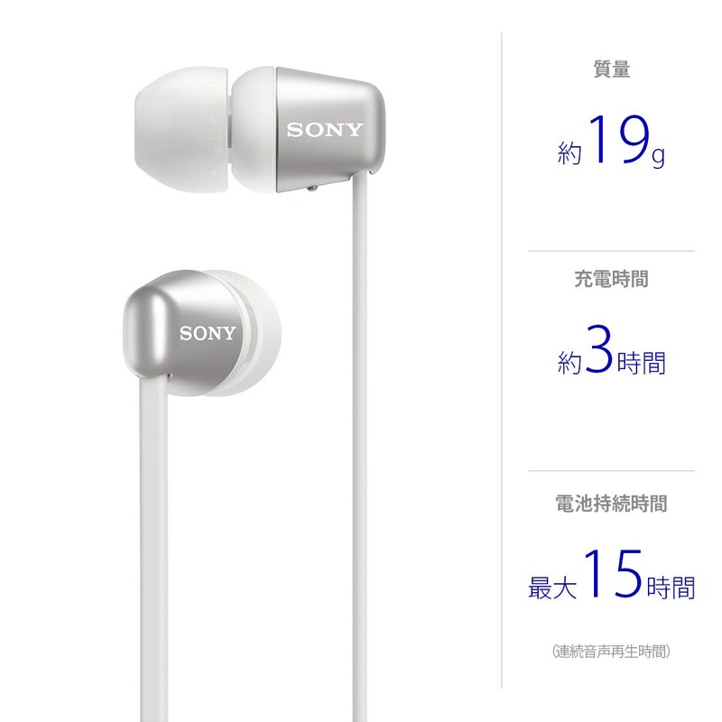 Sony WI-C310 WI-C310 WC Wireless Earphones, Bluetooth Compatible, Up to 15 Hours of Continuous Playback, Microphone Included, Flat Cable, 2019 Model, White