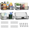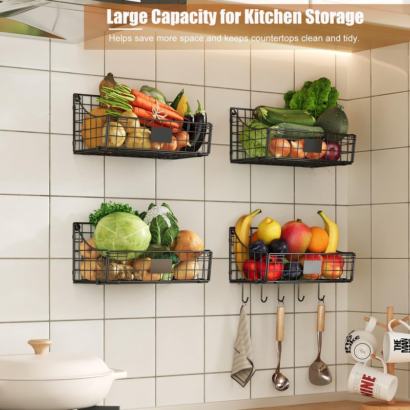 Sonyabecca 4 Pack Hanging Wall Basket for Organizing, Large Wire Basket for Storage Pantry with 5 S Hook+4 Adhesive Hook, Wall Mounted Shelf for Kitchen Bathroom