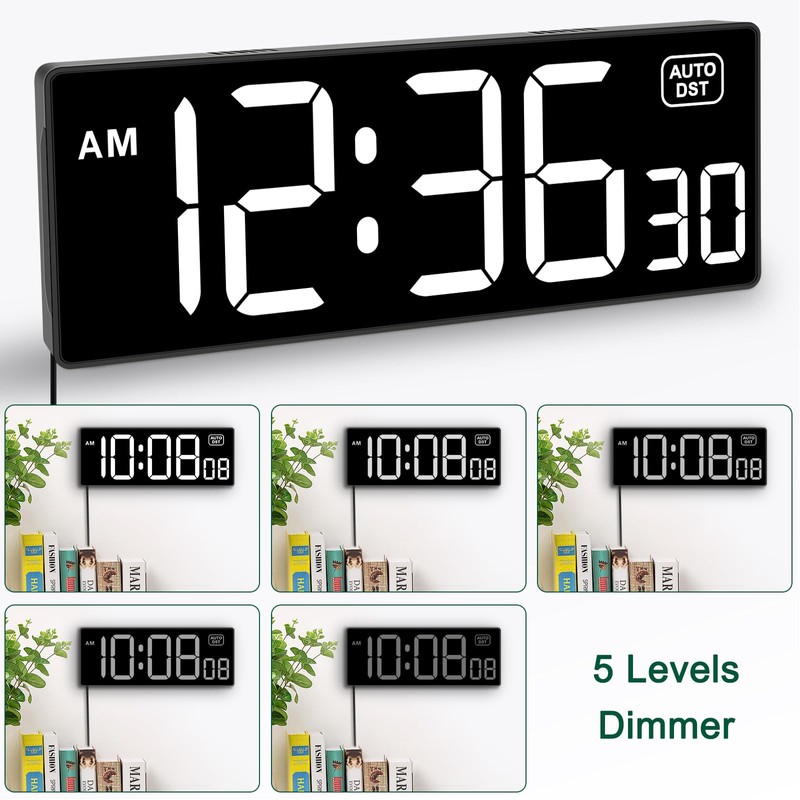 - - 5 levels adjustable dimmer, no matter the environment is too bright or too dark you can still see the time by adjusting the brightness with 1 button. If you want to have a good sleep, just set the lowest brightness before going to bed, or turn to the most shining level while your room has sufficient lighting.