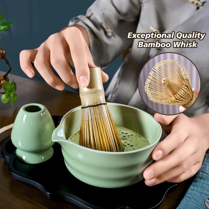- Complete 5-Pcs Matcha Kit: Experience the ultimate in matcha preparation with our matcha whisk set! This matcha tea set includes 1* bamboo whisk, 1* bamboo scoop, 1* scoop stand, 1* stainless steel sifter, 1* ceramic matcha bowl with spout. Perfect for matcha lovers and beginners alike! (Note: Matcha powder not included.)
