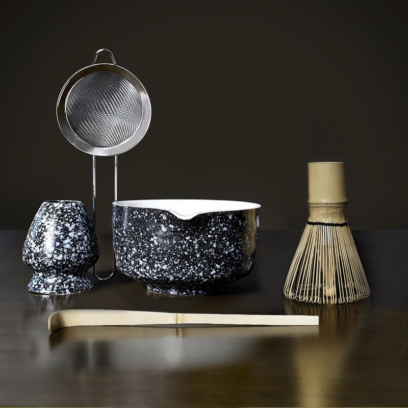 SOOCVWOLF 5 Pcs Matcha Whisk Set, Ceramic Matcha Whisk for Tea Ceremony, Matcha Set Whisk and Bowl, Matcha Set for Making Latte Drinks, for Matcha Lover and Starters(Spotty Black)