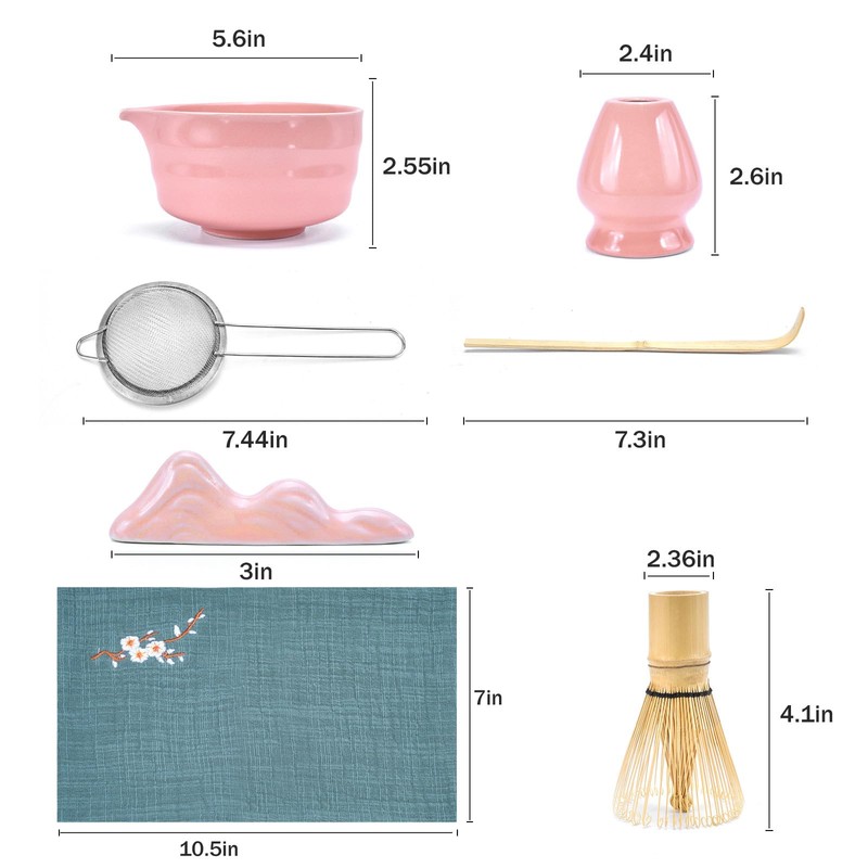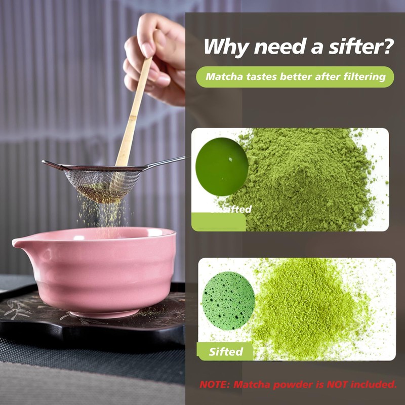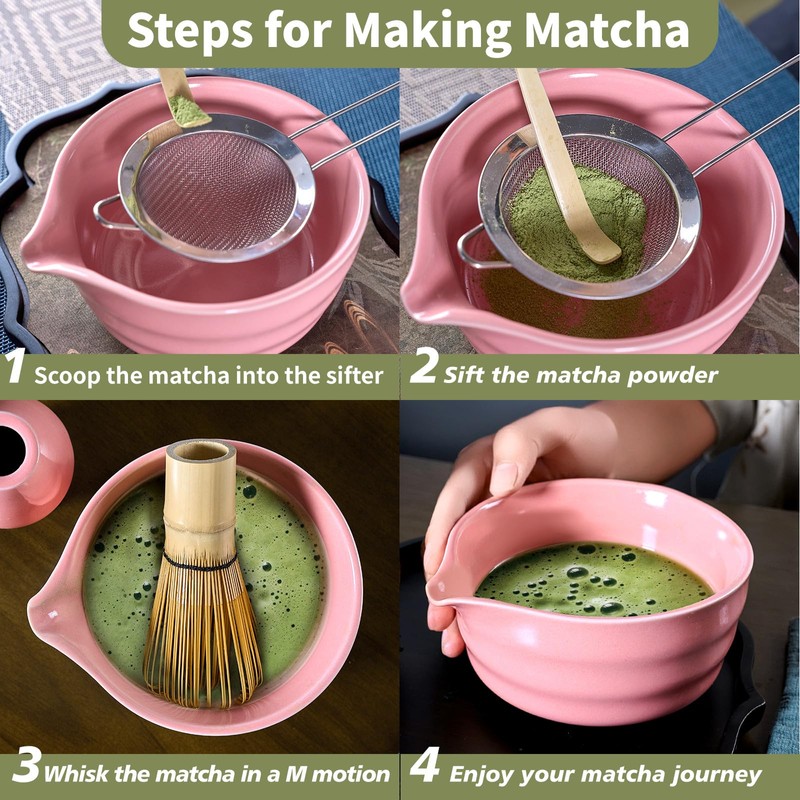 - Complete 7-Pcs Matcha Kit: Experience the ultimate in matcha preparation with our matcha whisk set! This matcha tea set includes 1* bamboo whisk, 1* bamboo scoop, 1* scoop stand, 1* stainless steel sifter, 1* ceramic matcha bowl with spout, 1* whisk holder, and 1* tea towel. Perfect for matcha lovers and beginners alike! (Note: Matcha powder not included.)