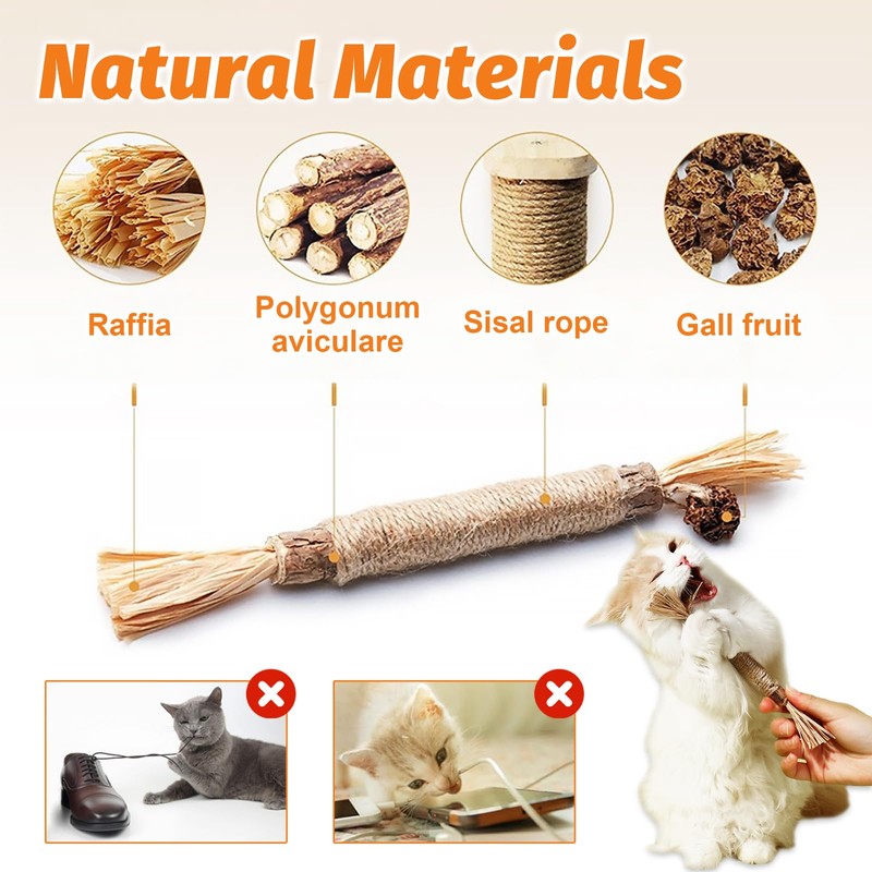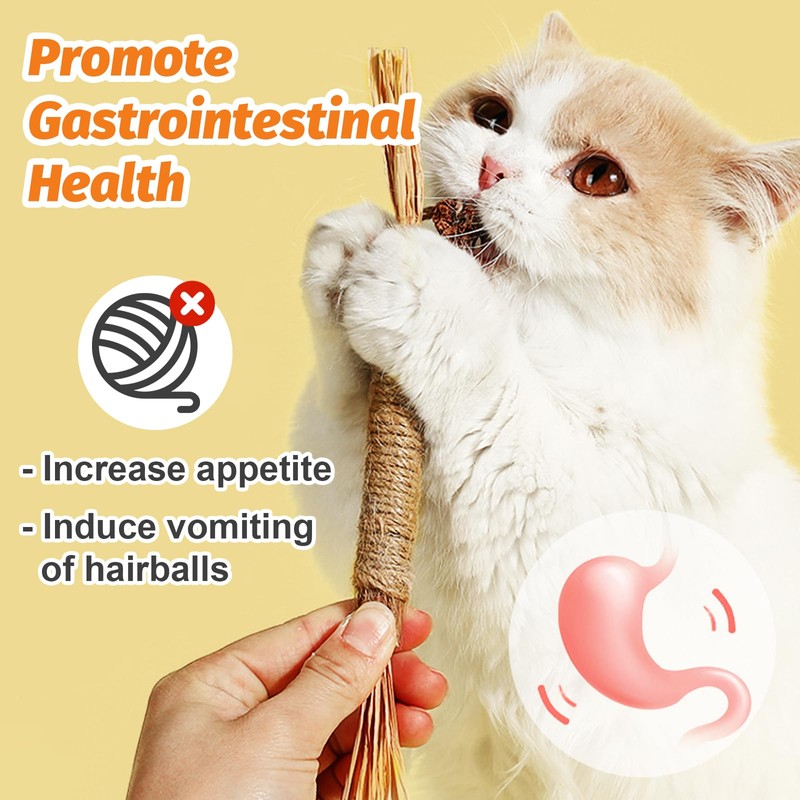 - Keep teeth clean: catnip sticks lead to healthy chewing behaviour of cats, can help effectively remove cat plaque, refresh breath and improve the cat's oral health, can also help teething kittens