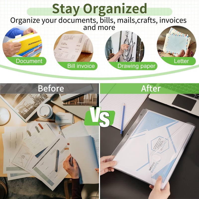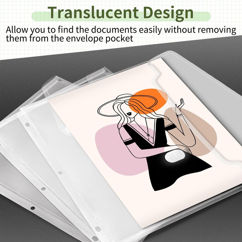 • Easy Classify & Look Up: Translucent design allow you to find the documents easily without removing them from the envelope pocket.