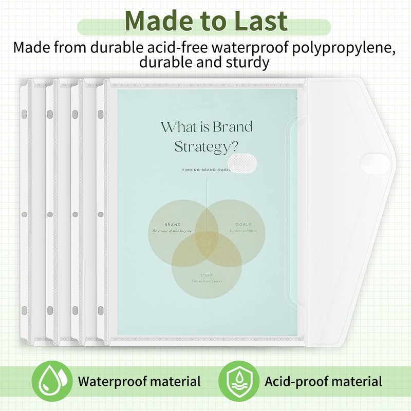 • Made to Last: Binder Pockets are made from Long-lasting acid-free waterproof and dust-proof polypropylene, provide better protection for your files. Sturdy enough to withstand lots of use.