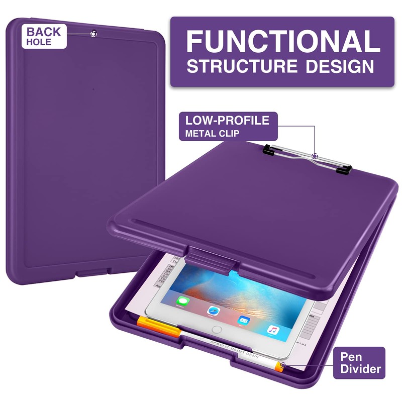 • Ample Storage Space: Equipped with both a pencil divider and a paper storage component that is deep enough for storing your 150 letter-sized paper sheets. Neatly store your important paperwork, writing utensils, office supplies, and anything else you may need at hand inside a clipboard case’s hinged compartment. Clipboard box can be a great asset to have when you're out in the field and need to take notes quickly.