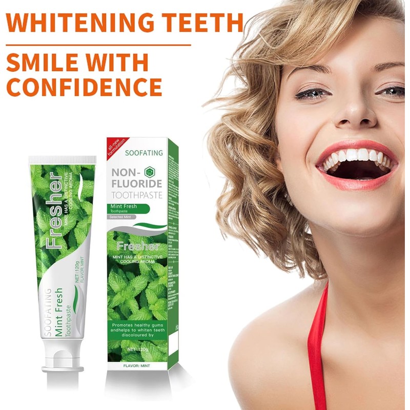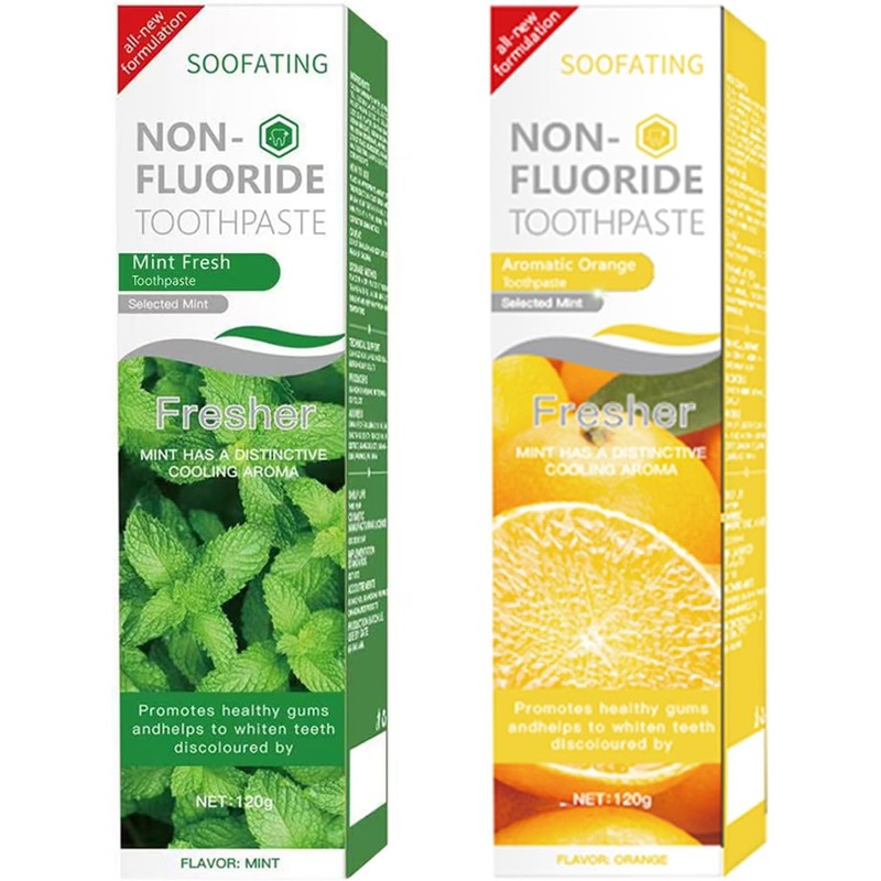 SOOFATING - Non-Fluoride Toothpaste Mint or Aromatic Orange Flavour Cleaning Toothpaste Breath Fresh Kids Friendly Teeth Whitening SLS Free Non-Toxic 4.23oz-2 Pack