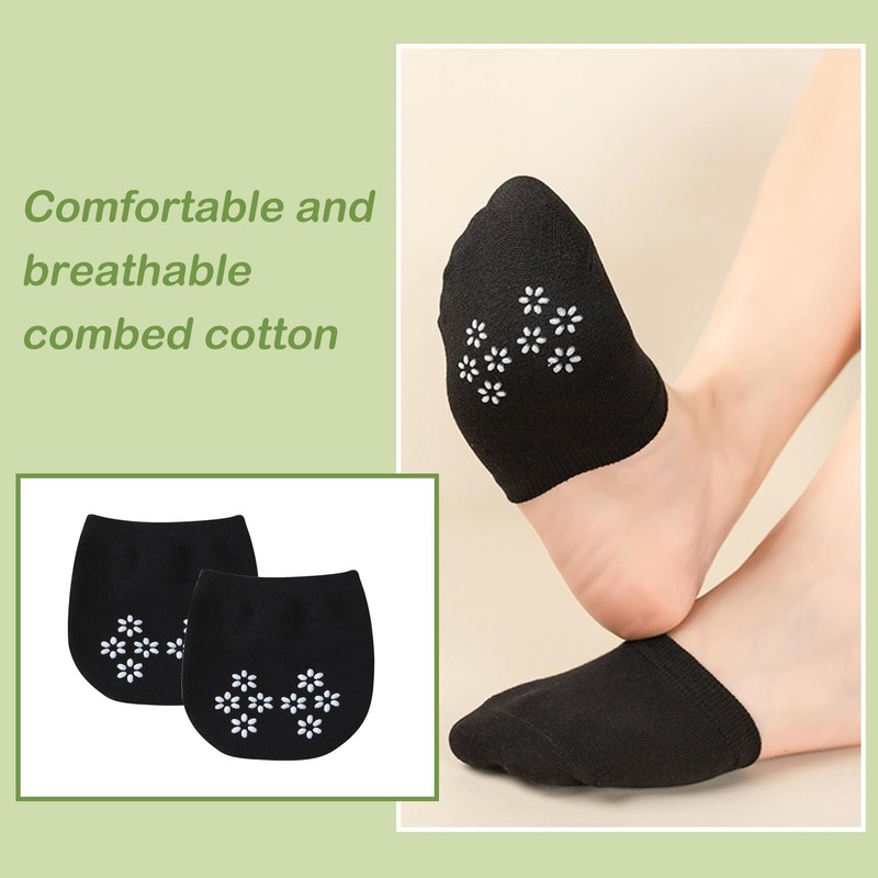 SooGree 6 Pairs Toe Topper Socks Women Invisible Socks Toe Cover Liner Half Socks Seamless Non-Slip Toe Half Socks (6 Pairs black)
