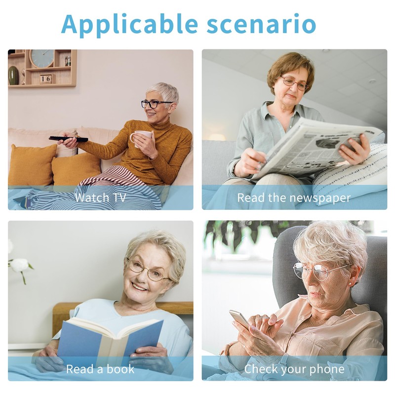 - OCCASIONS:Whether you are reading newspapers, books, using electronic devices, or doing manual activities, the anti-blue light presbyopia glasses can provide clear magnification, which is an indispensable vision aid in your life.