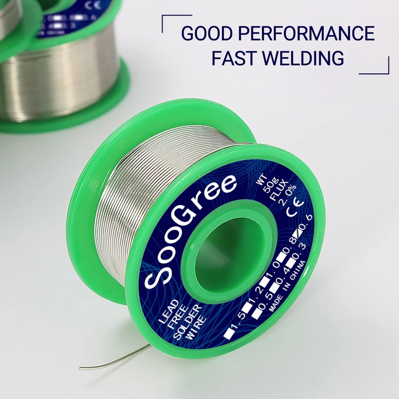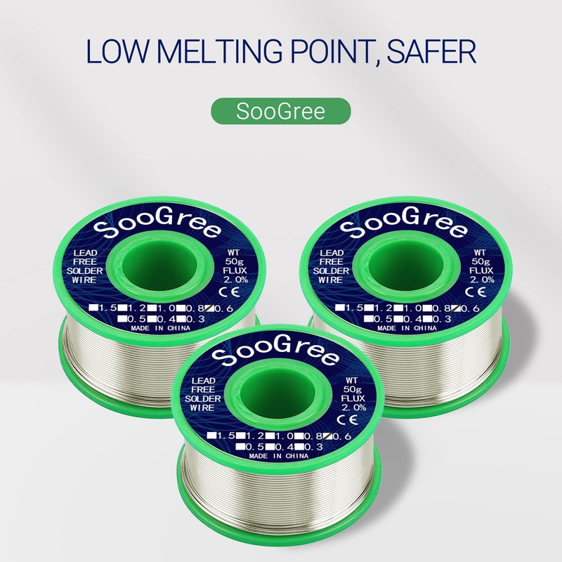 - 【 Lead Free Solder Wire】SooGree Lead Free Solder Wire, Flux content 1.8%,solder Wire made from 99.3% tin and 0.7% copper; Nontoxic and lead-free; Fast melting and maximum wetting spread; No spattering and corrosion; Heat fatigue and oxidation resistant; Melts clean and flows smooth; Less slag and smoke.