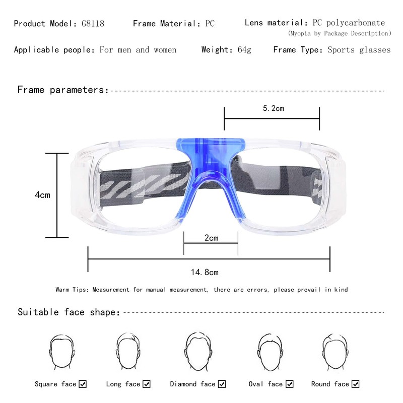 | Color: | G8118 Transparent Frame Blue Nose Pad |