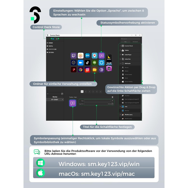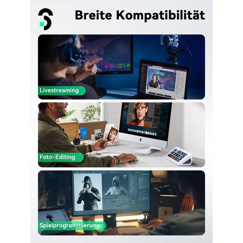 - Practical and extensive plug-in store: Discover a huge selection of plug-ins for hundreds of popular software from the areas of live streaming, office and entertainment as well as PC information display modules and key combination icons in the plug-in store. With the one-touch operation, you can effortlessly trigger single or multiple actions. The Stream Controller is not only an essential tool for streamers, but for anyone who needs a variety of hot keys. An absolute must for any content creator!