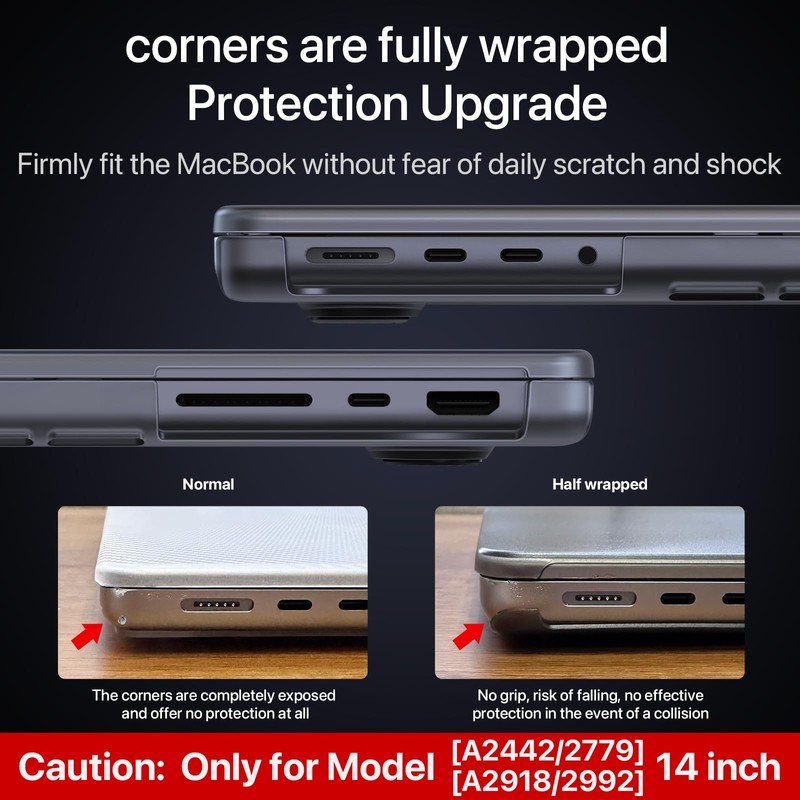 - đšăAttention: Check Your ModelăONLY compatible with MacBook Pro 14 inch 2023-2021 Release with new M3 M2 M1 Pro / Max Chip (Models: A2992 / A2918 / A2779 / A2442). Not fit other models. Pls verify Model No.ăAxxxăon the underside of MacBook before buying.