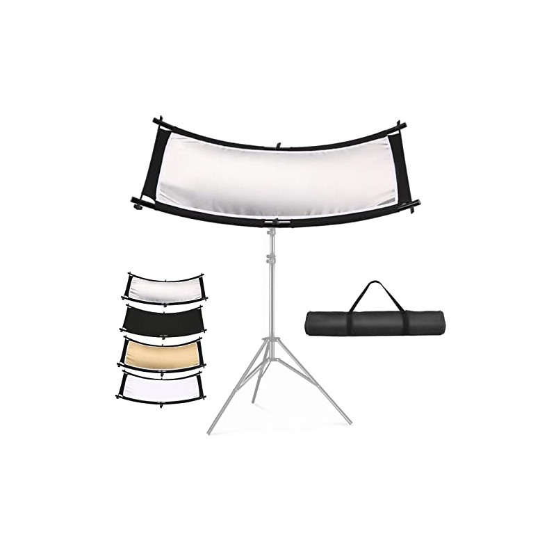 SOONPHO Clamshell Light Reflector 43x20inch/110x50cm with Carry Bag ,Arclight Curved Lighting for Photography Studio Video Photo Portrait Headshot Shooting,White/Silver/Gold/Black