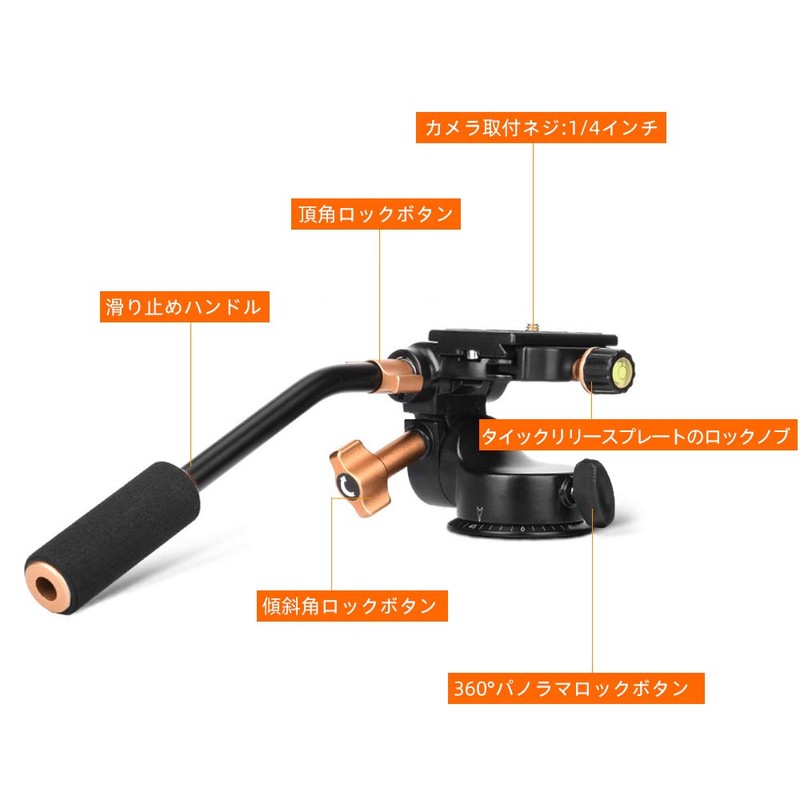 SOONPHO Video Head, Video Camera Head, 2-Way Head Head Head Freedom Head Tripod Handle, 360 Degree Rotation, Tripod Bet, Aluminum, Fluid Head, Photography Equipment, Extended Handle, Quick Shoe,