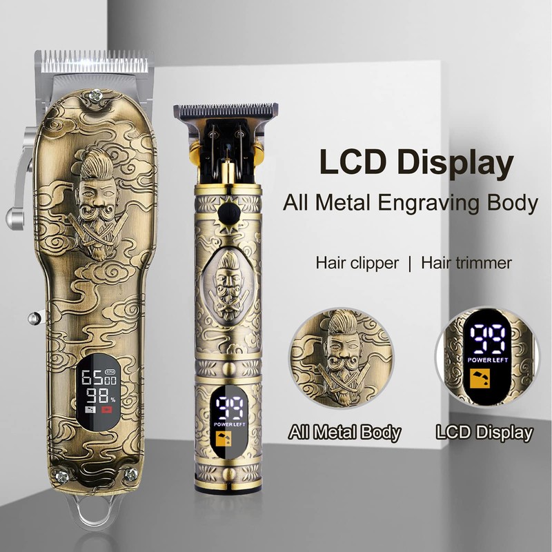 Soonsell Hair Clippers for Men T-Blade Trimmer Set,Man Professional Cordless Barber Clippers Set ,Blade Close Cutting Beard Trimmer ,LCD Display(Gold)