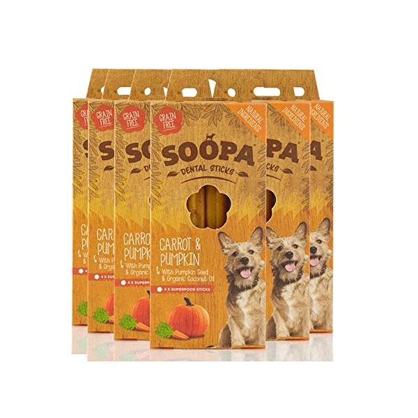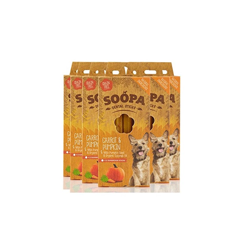 Soopa Dental Sticks Are Hypoallergenic, Grain Free Treats For The Pet That Loves To Chew. Made From Natural, Human Grade Ingredients. They Can Help Clean Teeth And Improve Dog Breath. These Sticks Are Full Of Vitamins, Minerals And Health Benefits. Carrot And Pumpkin: Pumpkin Seeds Are Known As Power Seeds Because They Are Great For The Skin, Coat, Soothe Digestion And Can Even Help Protect Your Dog From Intestinal Parasites And Worms. Coconut Oil Is A Superfood Rich In Mcts That Studies Have Found Help Boost Your Dog Brain Power, While Turmeric Has Properties To Keep Your Dog Healthy And Happy. Easy, Delicious, Nutritious, And Best Of All Dogs Love Them.