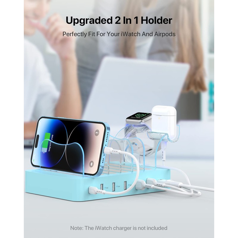 - 【Upgrade 2 in 1 Holder】With the new holder for iWatch Charger & Air-pods,all your phones,iWatch and Air-pods are charged in one place, clean and organized. Perfectly fit for company, office, boardroom, home, living room, bedroom, kitchen, hotel, restaurants and classroom.(The i Watch Charger is not included)