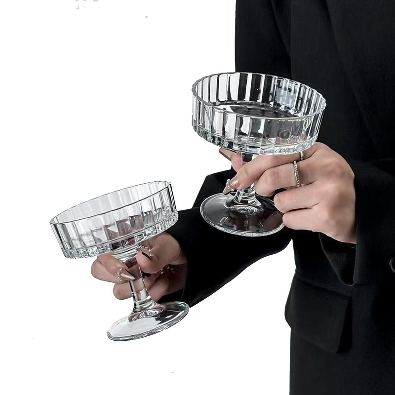 - Elegant Vintage Design– Ribbed coupe shape adds timeless charm, perfect for martinis, whisky, cocktails, juices, and even desserts like sorbet or tiramisu.