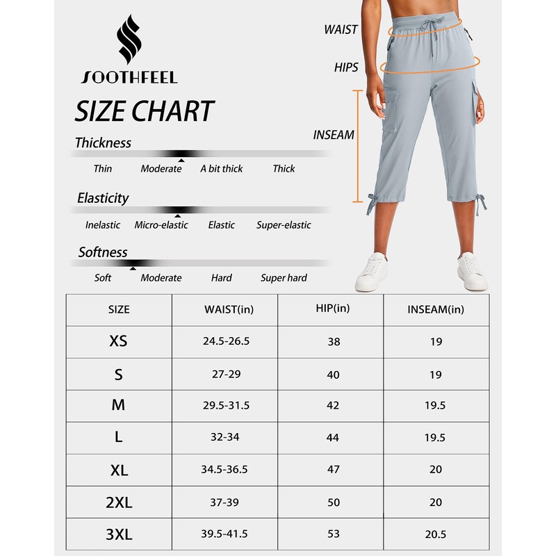 - 4 Flap Cargo Pockets: These cargo capris for women with 4 flap cargo pockets convenience for you to hold keys, coins and other necessary, free your hands while hiking or traveling.