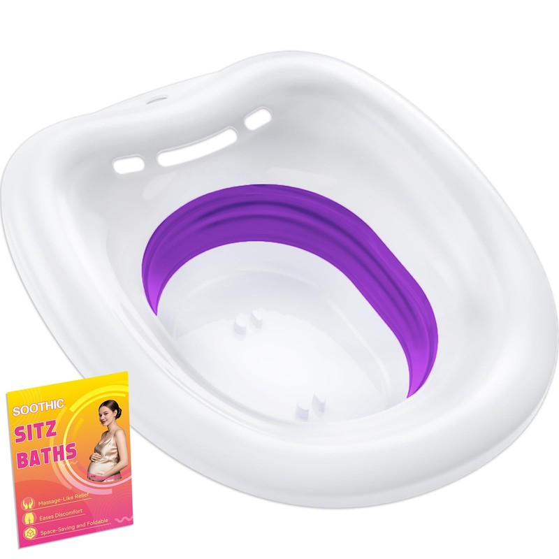 Soothic Sitz Bath for Toilet Seat Postpartum Care and Hemorrhoids, Yoni Steam Seat, Portable Bidet BPA Free Temperature Resistant, Foldable Basin for Epsom Salt Soak, Universal Fit