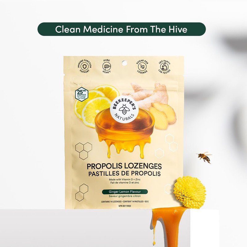 - NATURAL COUGH DROPS: Not your average cough drops, these propolis lozenges are made with powerful ingredients, like raw honey, propolis, ginger, lemon extract, Vitamin D and zinc, that promote immune health while soothing dry, scratchy throats. (And they taste great, too.)