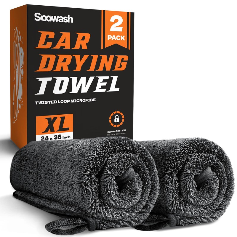 SOOWASH 2-Pack Microfiber Towels for Cars (36"x24") - Car Drying Towel, Ultra Soft & Absorbent, Streak-Free & Scratch-Free, Car Towels Drying for Auto Detailing, Trucks, SUVs