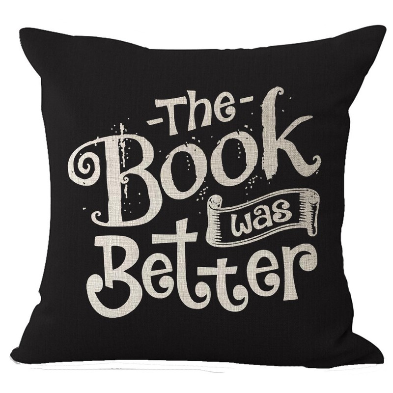 SOPARLLY Book Lover Reading Book Club The Book was Better Black Background Cotton Linen Decorative Throw Pillow Case Cushion Cover Square 18"X18