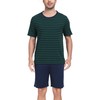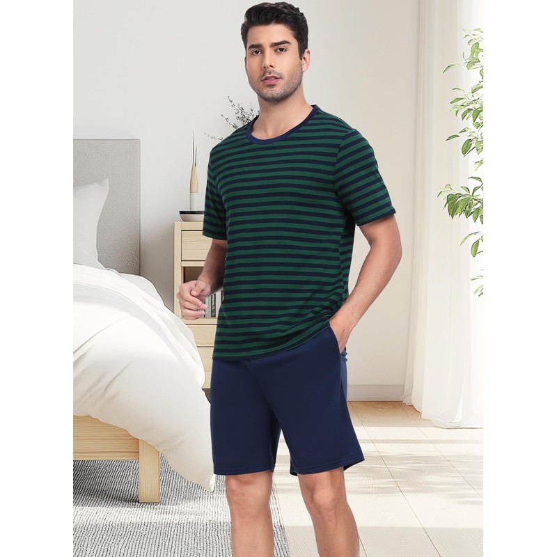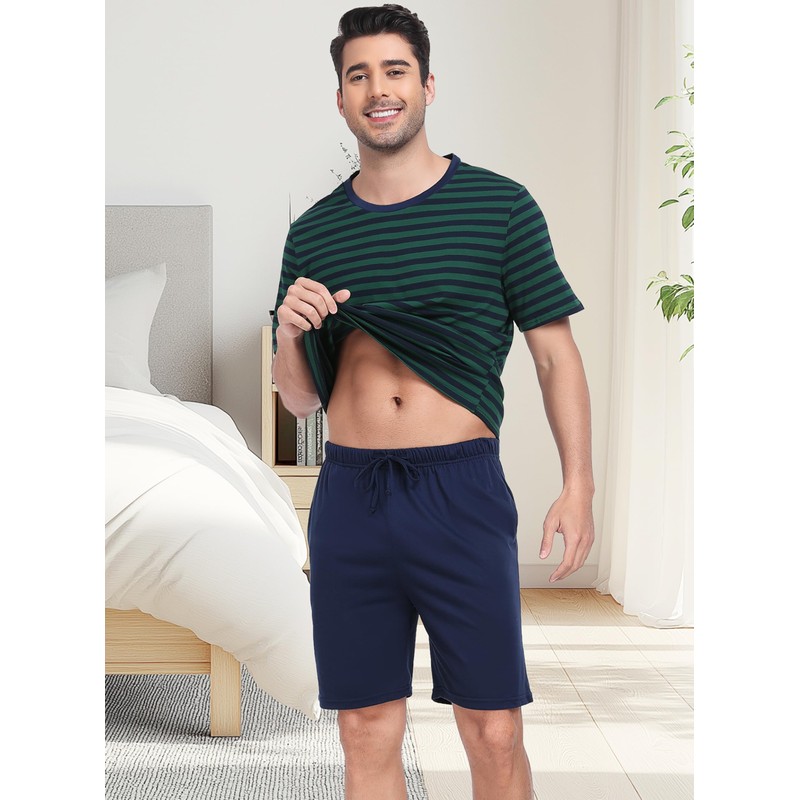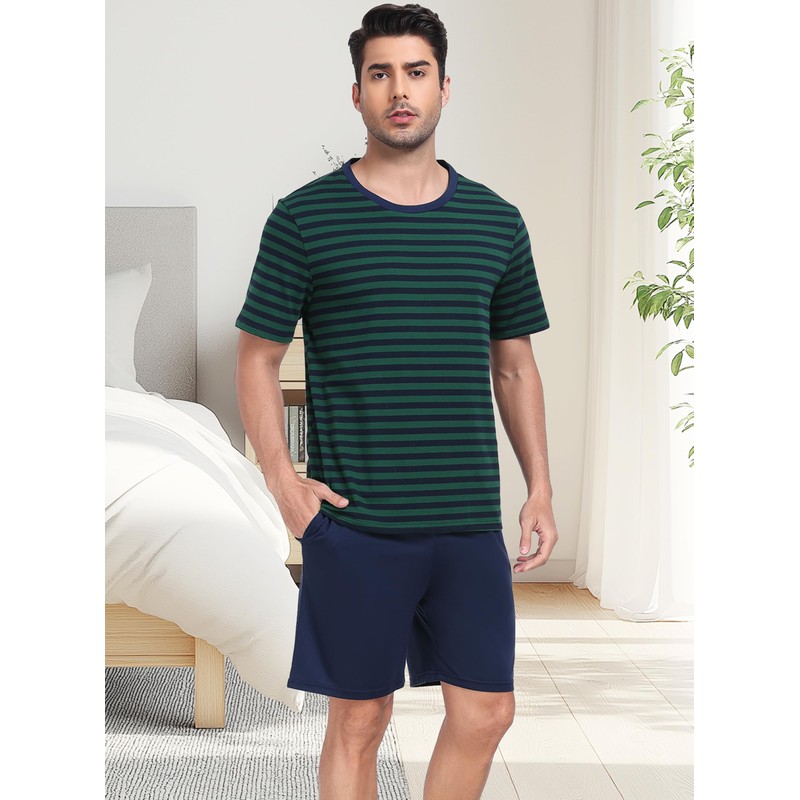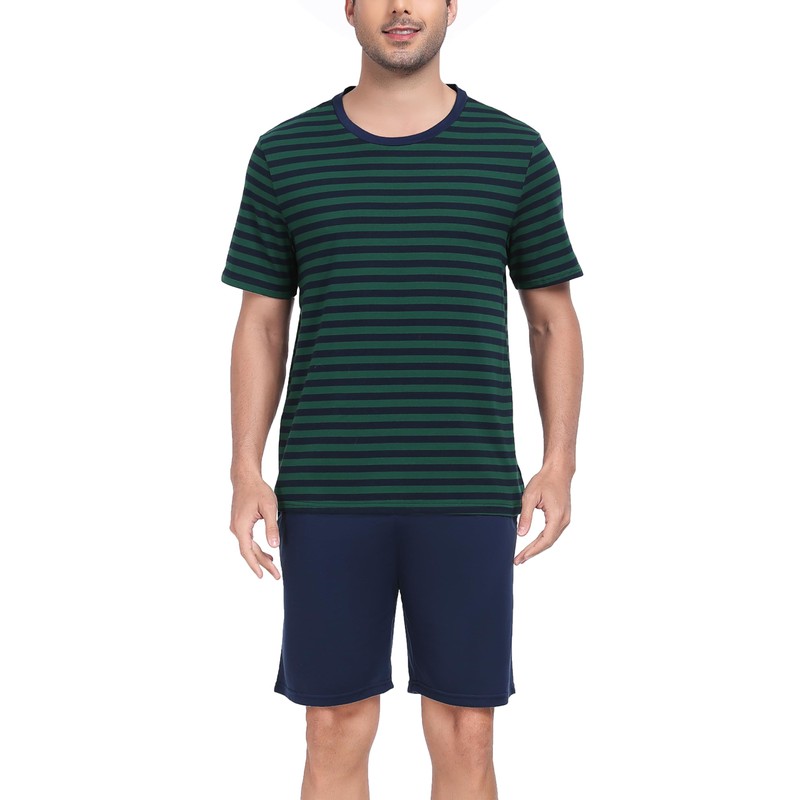 Sopesil Mens Pyjamas Shorts Sets Pjs for Men Short Sleeve Cotton Striped Men's Pyjamas Sets Cosy With Pockets Sleepwear Soft Lounge Wear, Dark green, L