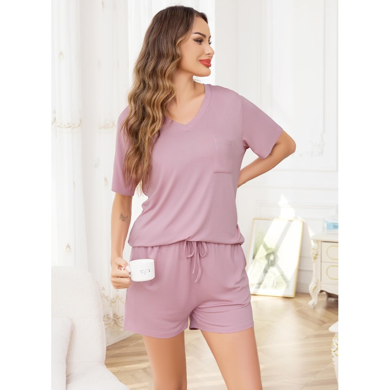 - đăSimple and comfortableăThis ladies pyjamas with V neck top, it's pajamas or a regular t-shirt, very versatile. Pyjamas bottoms shorts, comfortable pyjamas bottoms short, give you a good mood for the day
