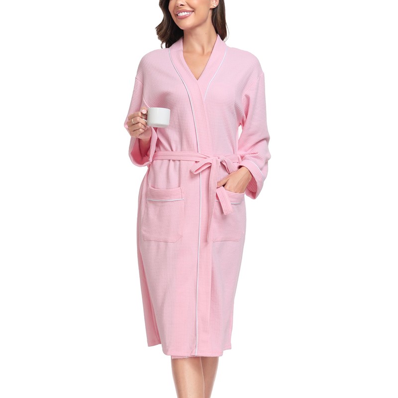 Sopesil Women Waffle Dressing Gowns, Cotton Kimono Robes Soft Luxury Bathrobe Loungewear Sleepwear Spa and Hotel for All Year A-Pink,XXL