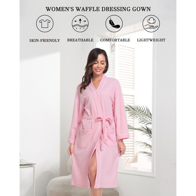 - 【WAFFLE TEXTURED DRESSING GOWN】Our lightweight dressing gown are crafted from a blend of 60% cotton and 40% polyester, ensuring a comfortable and breathable feel. The waffle texture adds a touch of sophistication, while the double-stitched construction enhances durability. These robes are highly absorbent, allowing you to stay dry and comfortable. The high-quality belt ensures a perfect fit that can be easily adjusted to your liking.