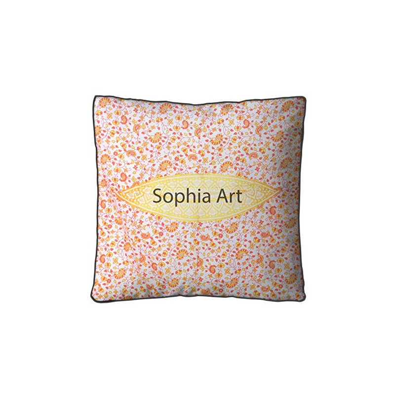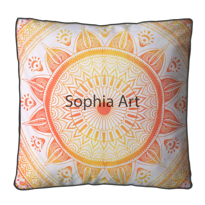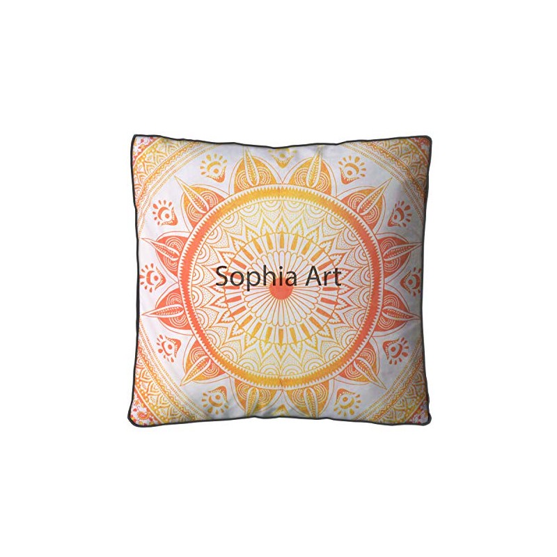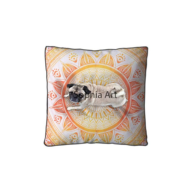 Sophia Art Indian Square Urban Design Floor Pillow Cover Ottoman Pouf Cushion Case Hippie Meditation Floor Throw Outdoor Bed Dog Pets Bed By 35"x35" (Orange Trident)