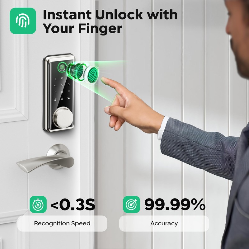 - 【Effortless Keyless Entry】The keyless entry door lock has multiple unlocking methods to get into your home, including fingerprint, password, IC card, NFC devices, Smart APP, and mechanical lock to ensure convenient entry. You will not be locked out or need to spend time searching pockets and bags.