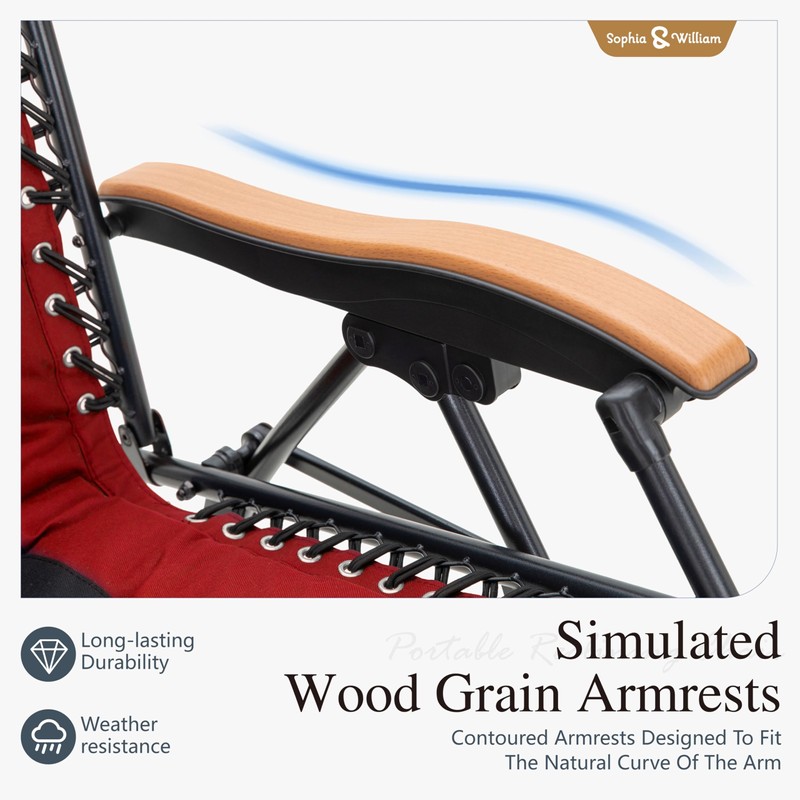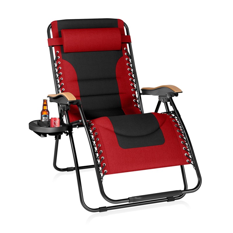 Sophia & William Oversize Zero Gravity Chair, Padded Recliner with Free Cup Holder, Supports 400 LBS (Red)