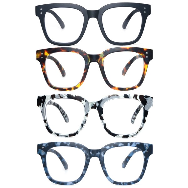 SOPHILY Oversized Reading Glasses for Women Men, 4 Pack Blue Light Blocking Readers, Oprah Style Square Eyeglasses 2.0x
