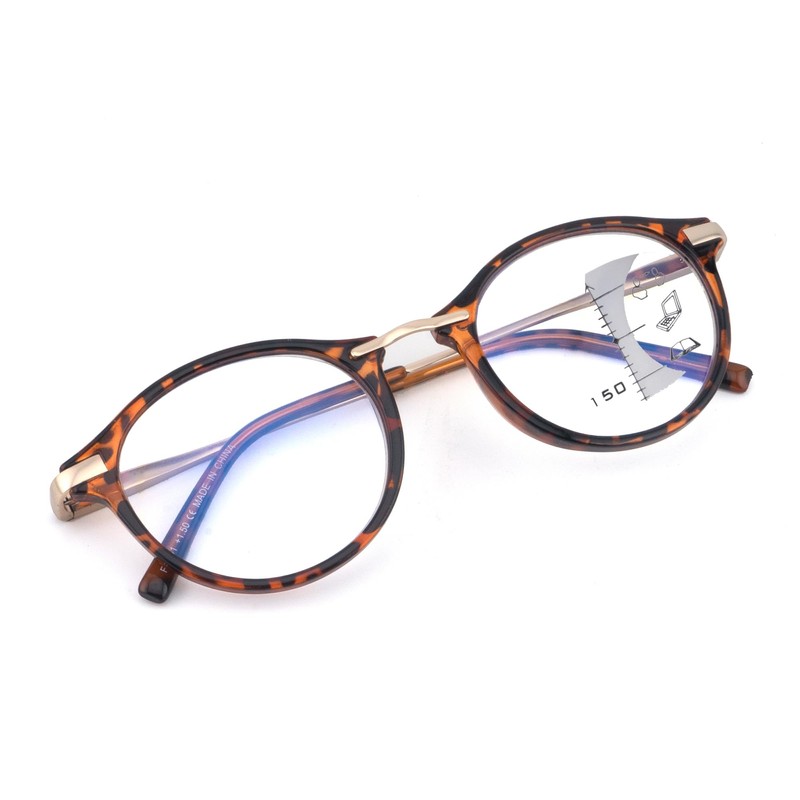 SOPHILY Round Progressive Multifocus Reading Glasses Women Men Multifocal Readers Blue Light Blocker Brown Tortoiseshell +2.0