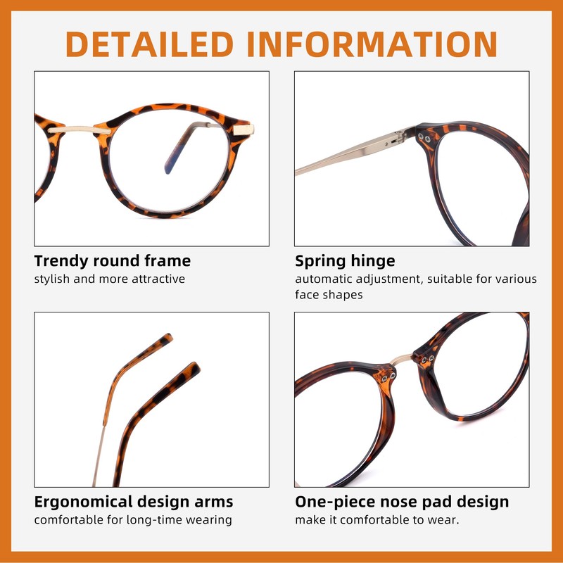 - 【Round Frame Reading Glasses for Women / Men】These progressive readers have 4 colors to choose: black tortoiseshell,brown tortoiseshell, red, clear white, vintage round shape,suitable for all kinds of women’s mens face ,including small face. Lightweight durable unbreakble material, stylish design, integral nose pads,adjustable flexible spring hinge temples,all give you comfortable wear.