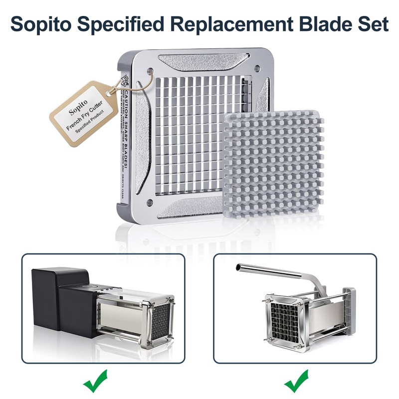 - Hoja robusta y de grado restaurante diseñada para años de uso. Consejo: esta cuchilla solo para el cortador de freír de acero inoxidable Sopito y el cortador eléctrico de freír no puede funcionar con el cortador de freír de material ABS Sopito