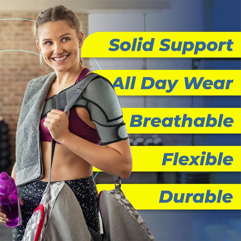 - Diseñada para estabilizar su hombro y ejercer una sutil presión en el punto correcto, disminuyendo el dolor punzante. Nuestra hombrera es ideal para usuarios activos, pero también se puede utilizar para estabilizar el movimiento mientras se duerme, como recordatorio para no levantar o cargar objetos pesados con ese brazo y, por supuesto, para aplicar hielo en el hombro cuando se tiene dolor.