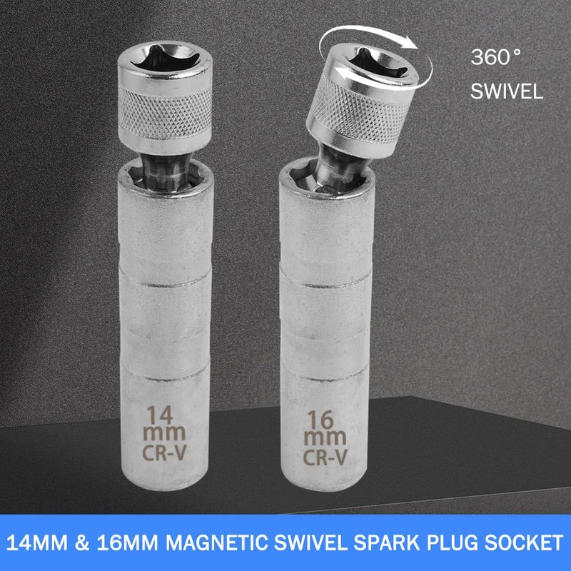 SopwMap Spark Plug Wrench with Magnet, 14 mm/16 mm, 3/8 Inch Spark Plug Socket, Magnetic Spark Plug Plug, Spark Plug Disassembly Tool, for Car Repair and Maintenance, Pack of 2