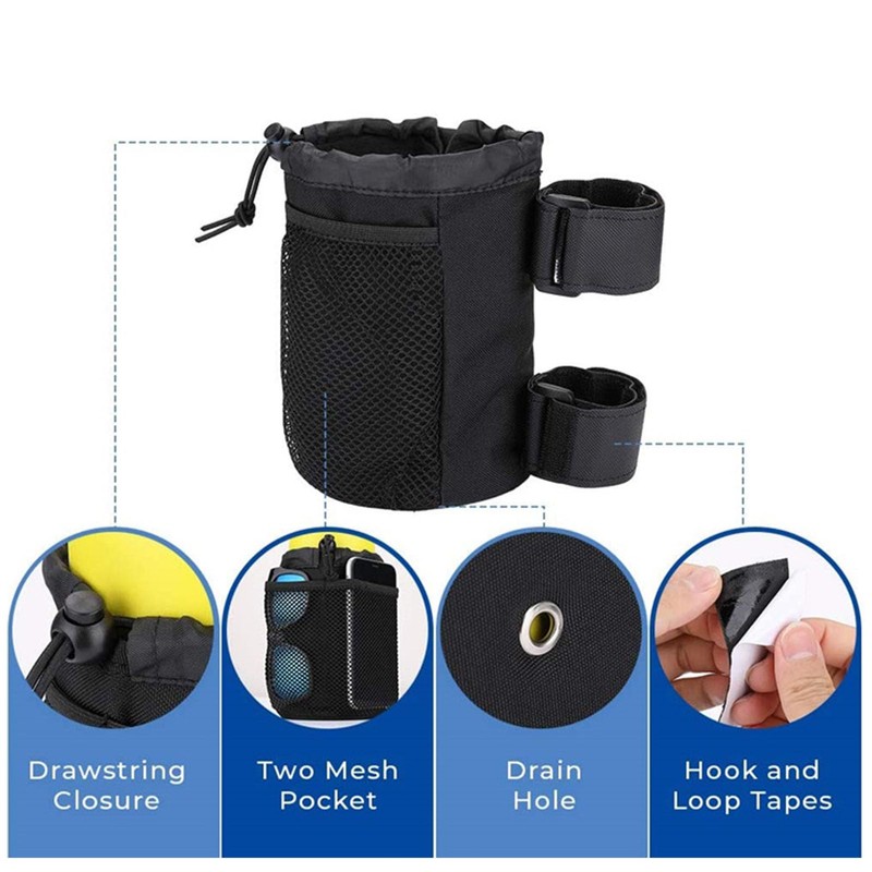 Sorandy 2 Pack Roll Bar Cup Holder, Universal Drink Holder for UTV Wheelchair Scooter Walker Bike Boat, Water Bottle Holder Accessories with Mesh Pocket and Sticky Straps, Black, Sorandycqa8szypf7