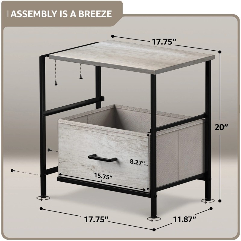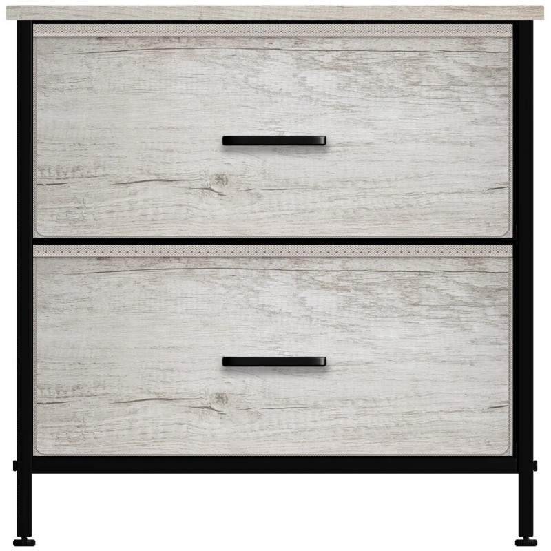 - SPACIOUS STORAGE: The 2 fabric drawers of the small dresser offer large storage space for nighttime necessities with Each drawer is approximately 8 inches deep. The wood top is ideal to place alarm clock, phone, charger, eyeglasses, keeping them in your reach.