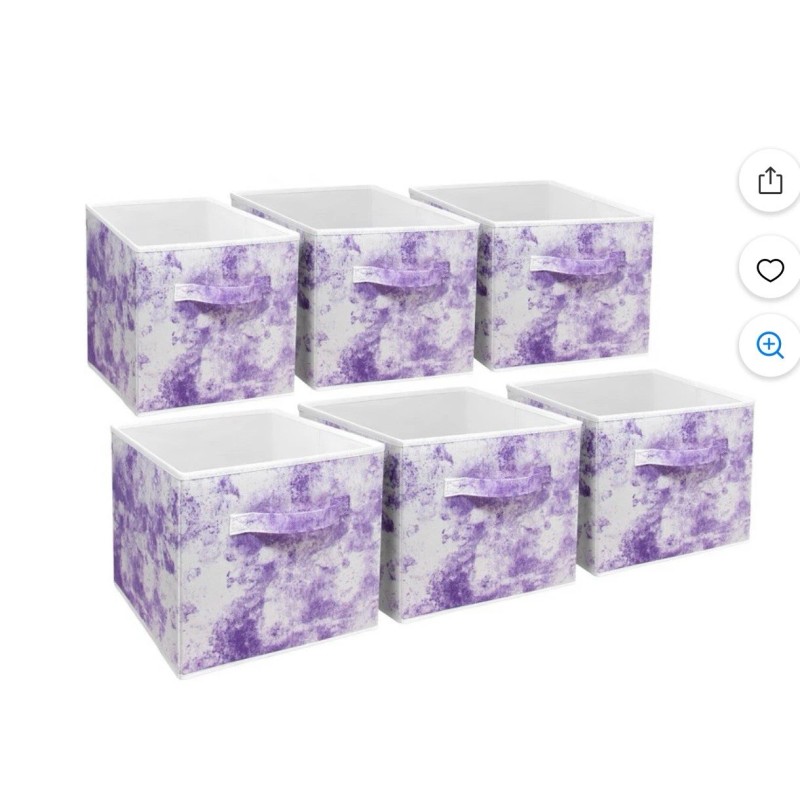 The Sorbus Storage Cube Fabric Basket Bin is a set of 6 foldable cloth organizers with a tie-dye print in pink color. These square-shaped baskets are made of cardboard and fabric, featuring a printed finish. With a free-standing mounting style and convenient handles, these storage cubes are ideal for organizing various items in your home. With a compact size of 11" length and 10.50" width, these storage bins from Sorbus are a stylish and practical solution for keeping your space tidy.