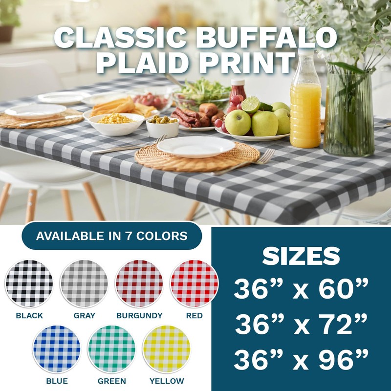 Sorfey Kitchen Tablecloth -Fitted with Elastic, Vinyl with Flannel Back, Fits for Table 36" w x 96" L Rectangle,Water Proof, Easy to Clean, Checked Black Design