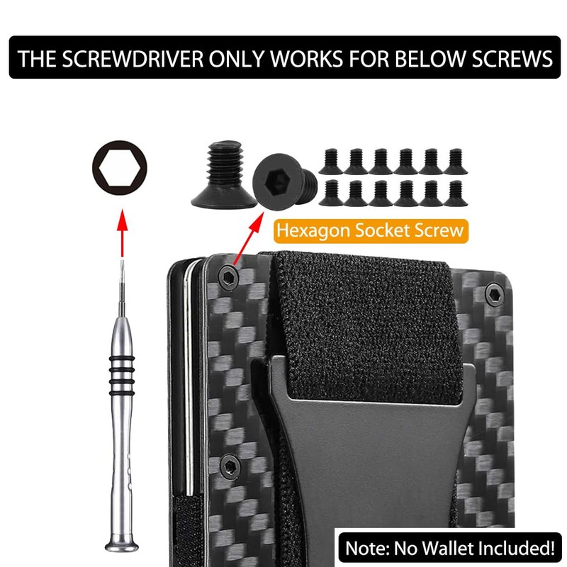 - 【What You Get?】 Sorftin wallet replacement screws & elastic band tool kit has been carefully checked and nicely packed into a small but beautiful kraft envelope, which contains 14 screws 1 screwdriver, 1 Stretchy Strap, and 1 stainless steel cash fastener. It can be given as a small gift to your friends, coworkers, or family members to fix their metal wallets with or without money clip.